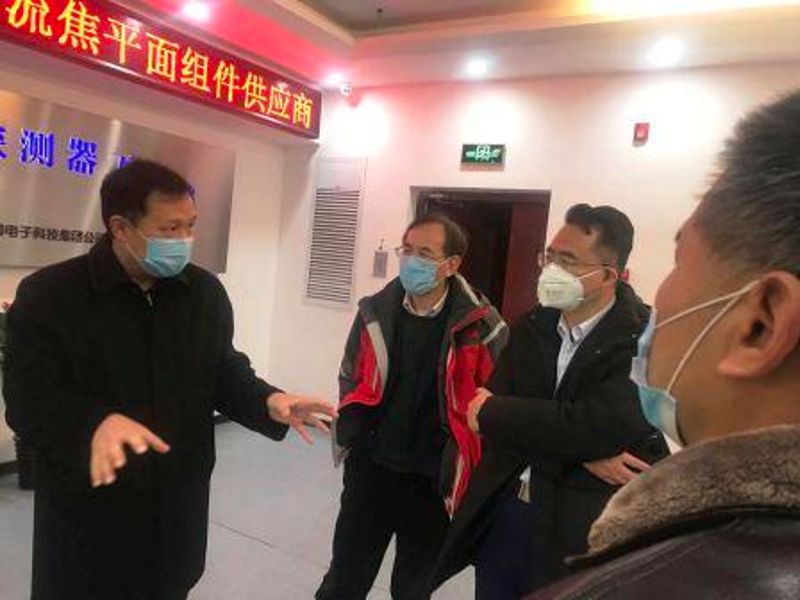 2020年2月28日,集團公司黨組成員、副總經(jīng)理黃興東一行赴電科光電,指導(dǎo)公司疫情防控與復(fù)工復(fù)產(chǎn)工作情況。