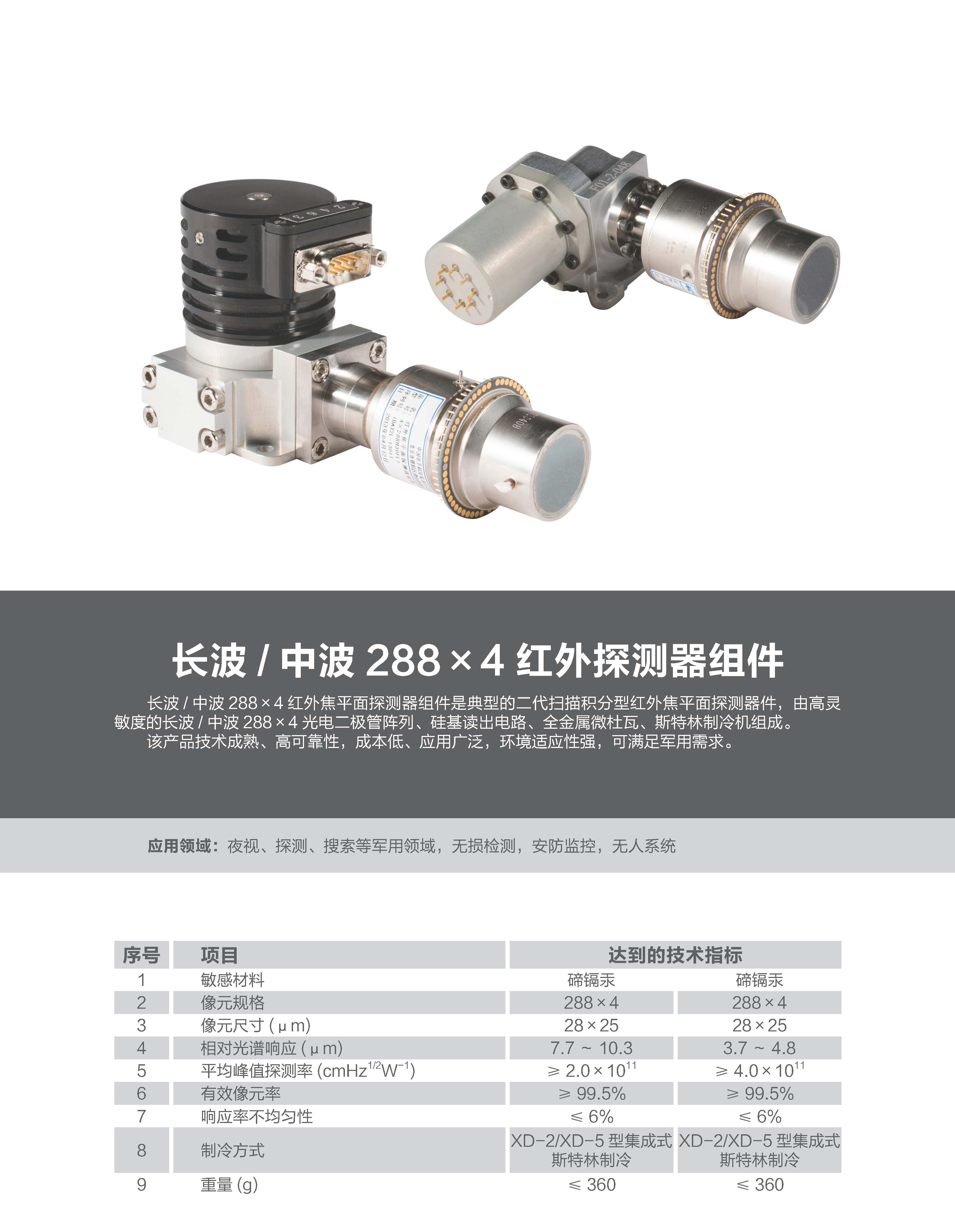 長(zhǎng)波/中波288×4紅外探測(cè)組件